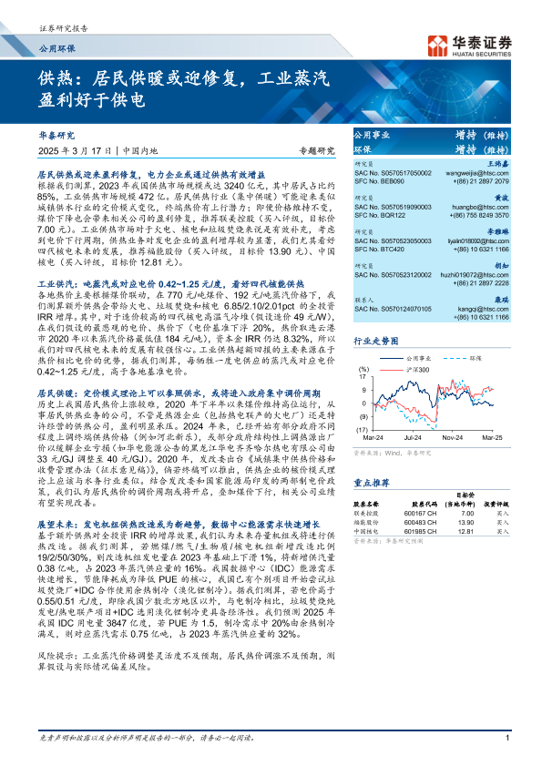 【华泰证券】【20250317】公用环保专题研究:供热:居民供暖或迎修复,工业蒸汽盈利好于供电-39页