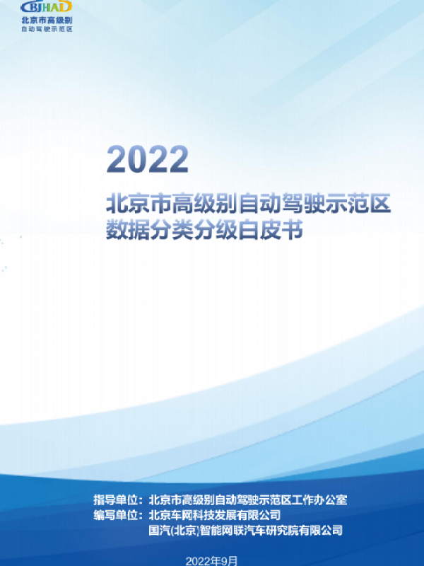【北京市高级别自动驾驶示范区工作办公室】【202209】2022北京市高级别自动驾驶示范区数据分类分级方法白皮书-40页