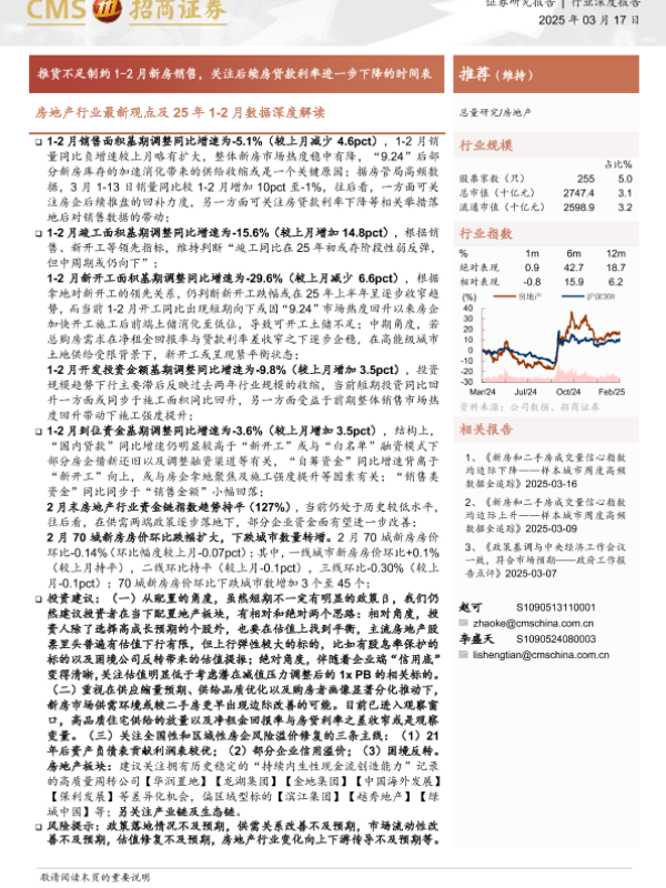 【海通证券】【20250317】20250317-招商证券-房地产行业最新观点及25年1-2月数据深度解读:推货不足制约1-2月新房销售,关注后续房贷款利率进一步下降的时间表-19页