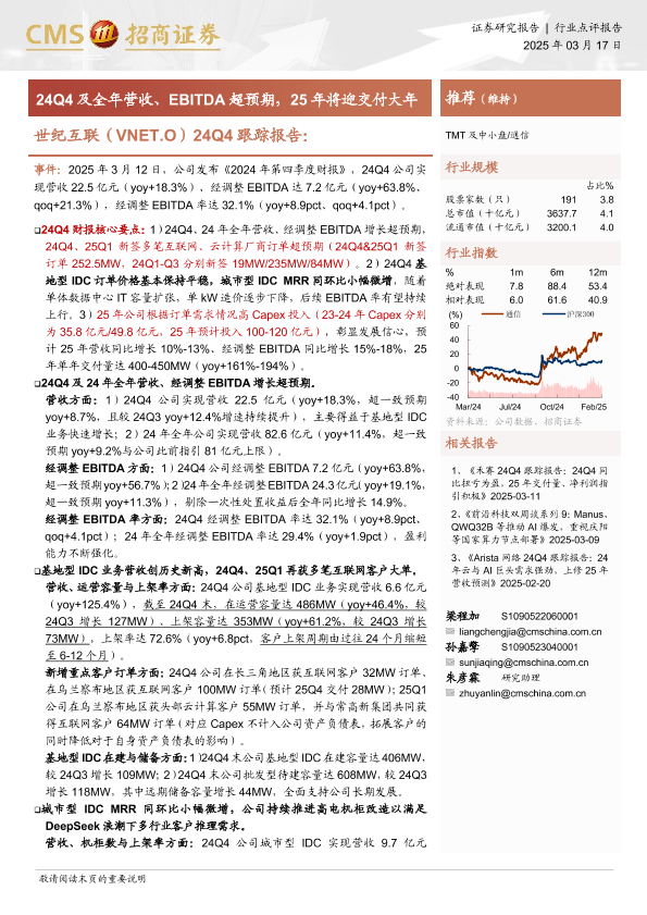 【海通证券】【20250317】世纪互联24Q4跟踪报告:24Q4及全年营收、EBITDA超预期,25年将迎交付大年-10页