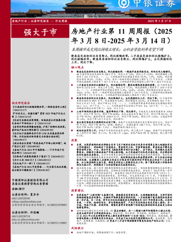 【中银证券】【20250317】20250317-中银证券-房地产行业第11周周报:本周楼市成交同比持续正增长;公积金贷款利率有望下调-27页