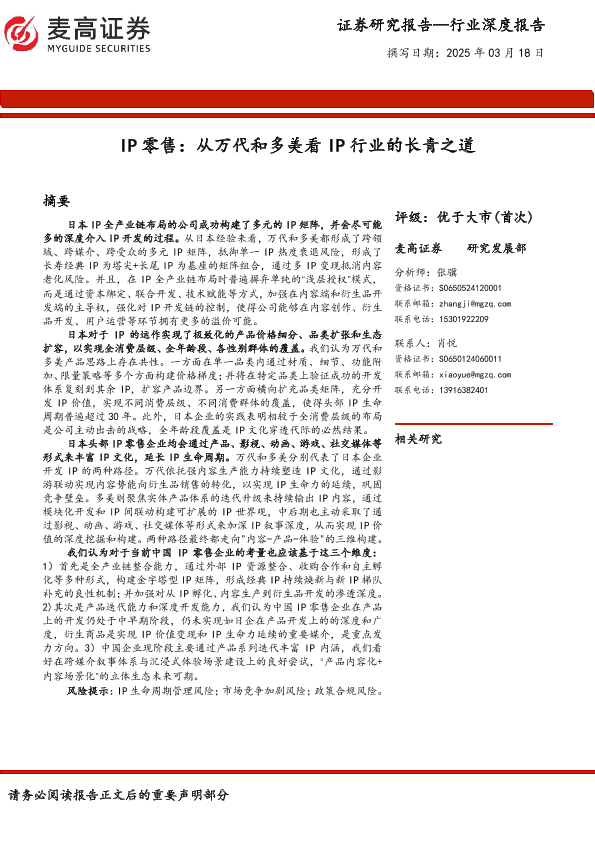 【麦高证券】【20250318】IP零售:从万代和多美看IP行业的长青之道-41页