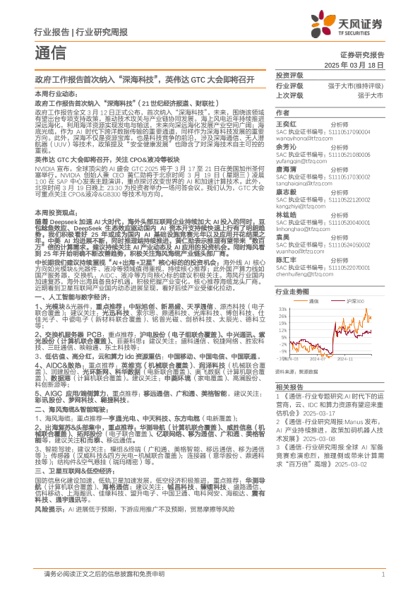 AI技术 政府工作报告 深海科技 英伟达GTC大会 通信行业