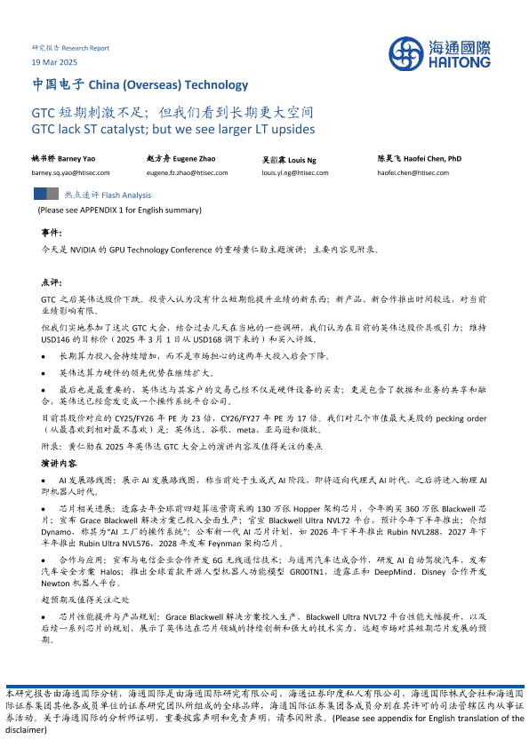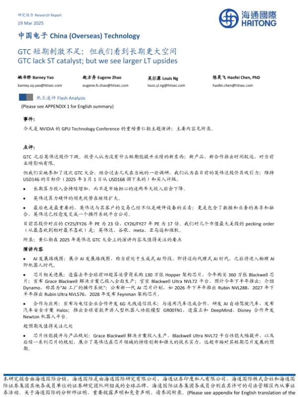 【海通国际】【20250319】中国电子:GTC短期刺激不足;但我们看到长期更大空间-11页