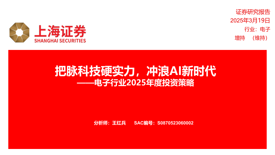 【上海证券】【20250319】2025年度电子行业投资策略:把脉科技硬实力,冲浪AI新时代-33页