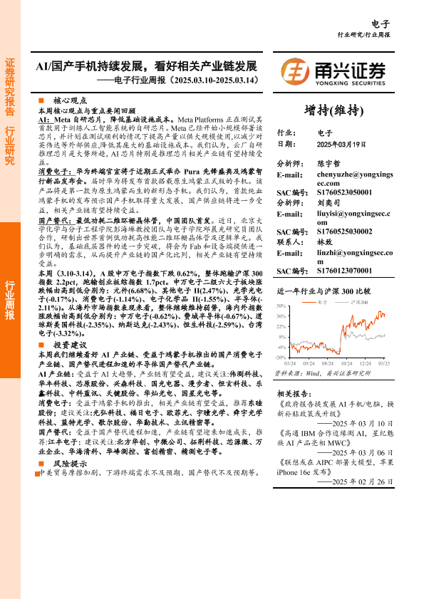 【甬兴证券】【20250319】20250319-甬兴证券-电子行业周报:AI 国产手机持续发展,看好相关产业链发展-15页