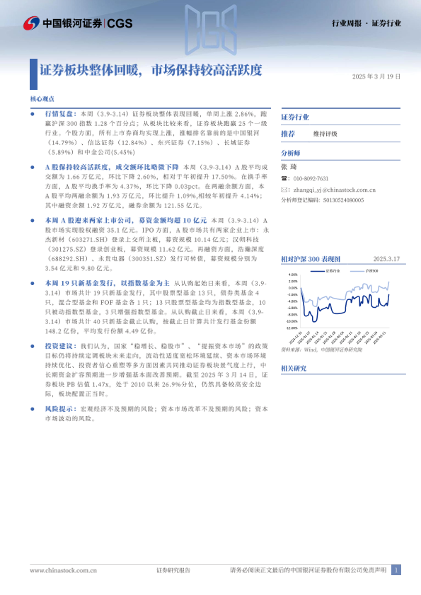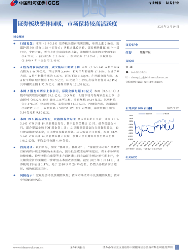 【银河证券】【20250319】证券行业行业周报:证券板块整体回暖,市场保持较高活跃度-15页