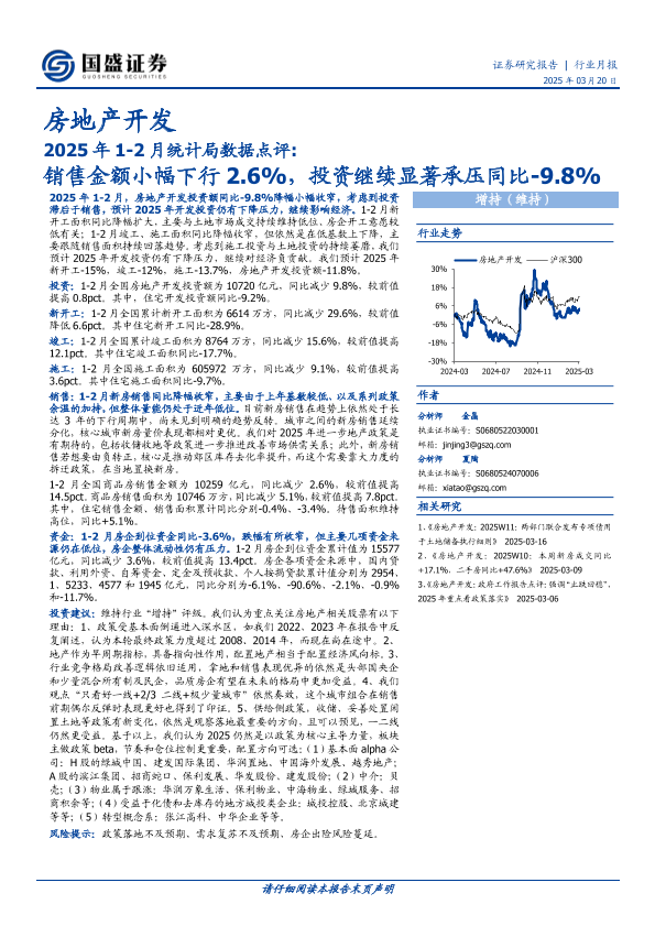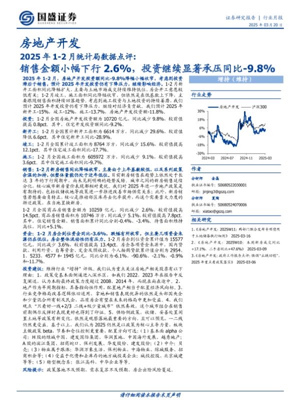 【国盛证券】【20250320】房地产开发2025年1-2月统计局数据点评:销售金额小幅下行2.6%,投资继续显著承压同比-9.8%-12页
