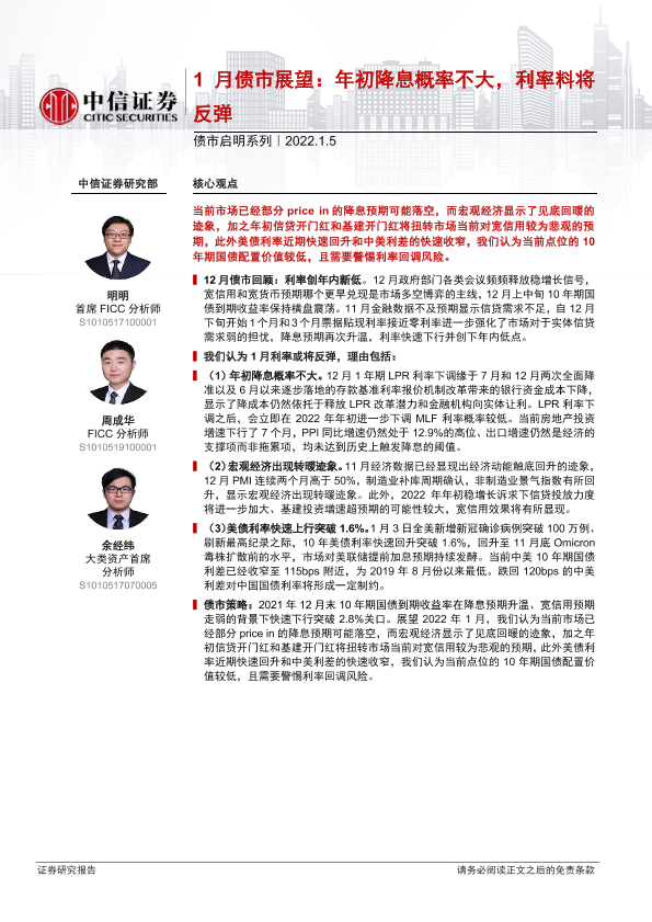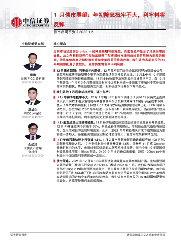 【中信证券】【20220105】1月债市展望:年初降息概率不大,利率料将反弹-30页