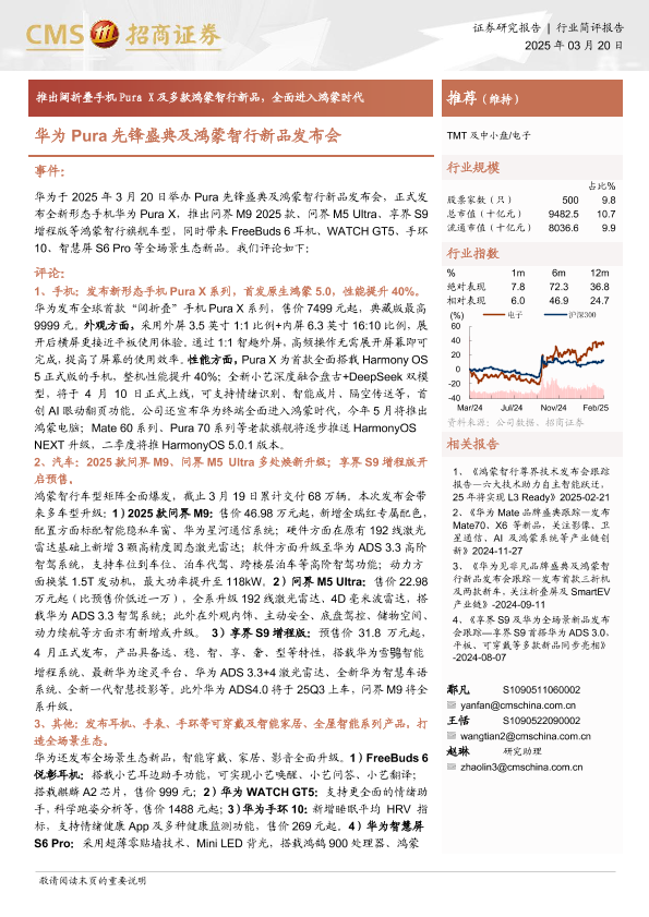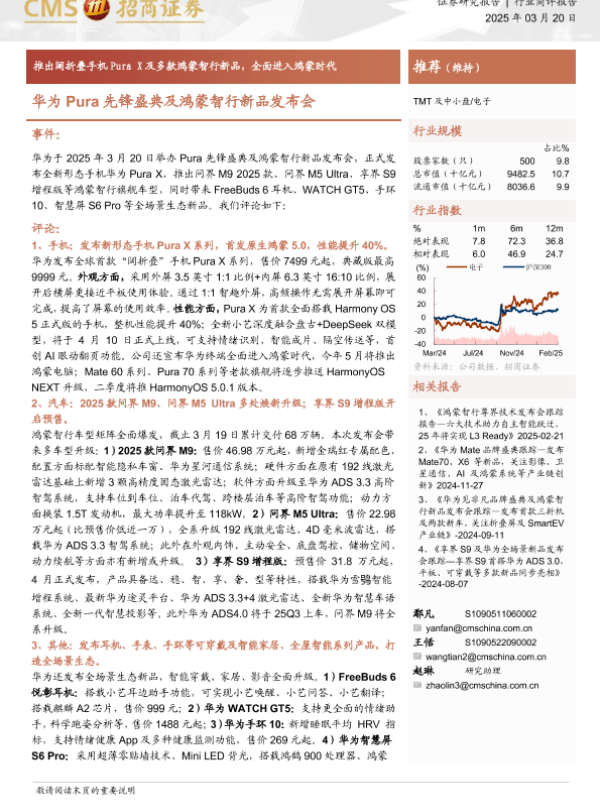 【海通证券】【20250320】电子行业华为Pura先锋盛典及鸿蒙智行新品发布会:推出阔折叠手机Pura X及多款鸿蒙智行新品,全面进入鸿蒙时代-22页