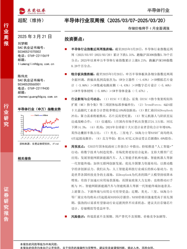 【东莞证券】【20250321】20250321-东莞证券-半导体行业双周报:存储价格将于4月全面调涨-12页