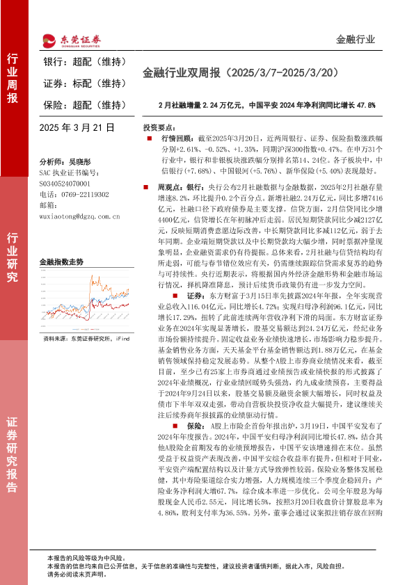 【东莞证券】【20250321】20250321-东莞证券-金融行业双周报:2月社融增量2.24万亿元,中国平安2024年净利润同比增长47.8%-14页