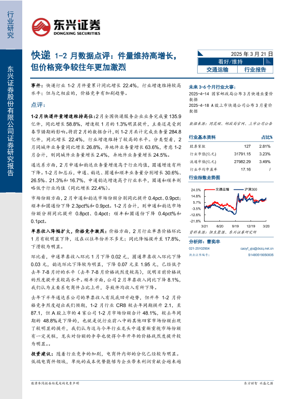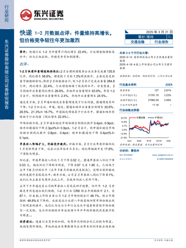 【东兴证券】【20250321】快递1-2月数据点评:件量维持高增长,但价格竞争较往年更加激烈-11页