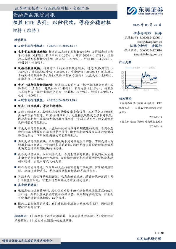 【东吴证券】【20250322】20250322-东吴证券-金融产品跟踪周报:权益ETF系列:以防代攻,等待企稳时机-20页