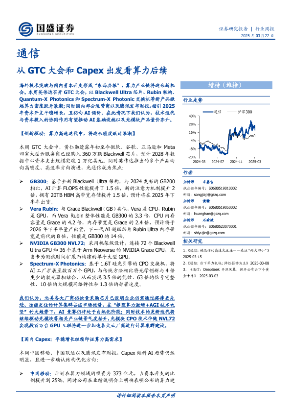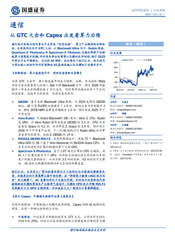 【国盛证券】【20250322】通信行业周报:从GTC大会和Capex出发看算力后续-13页