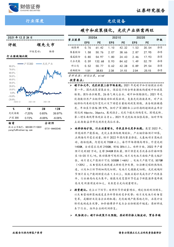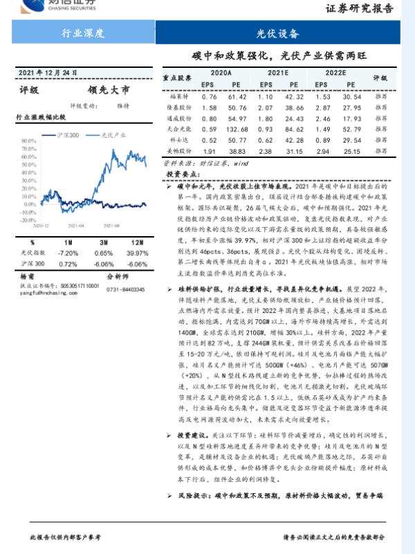 光伏产业 市场预测 投资建议 政策分析 碳中和