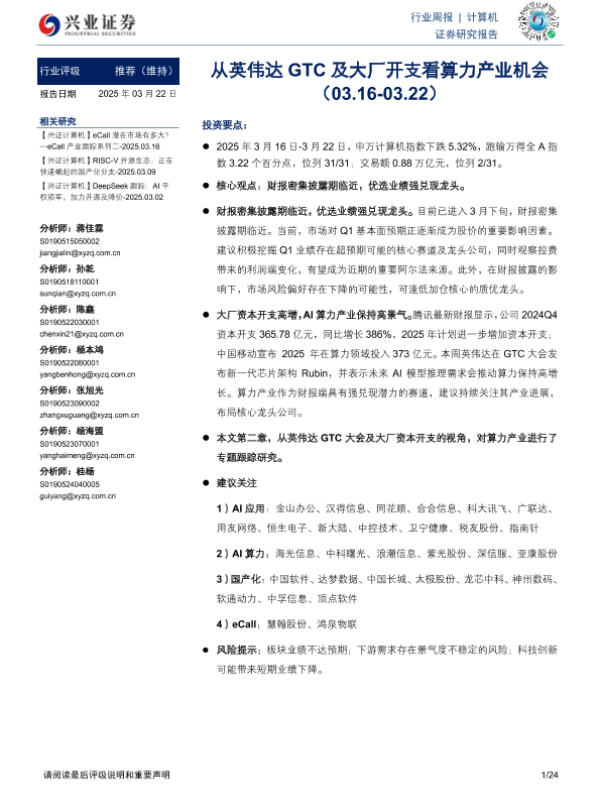 【兴业证券】【20250322】从英伟达GTC及大厂开支看算力产业机会-24页
