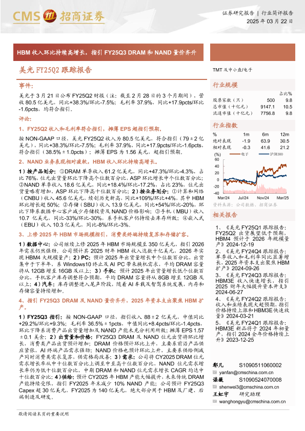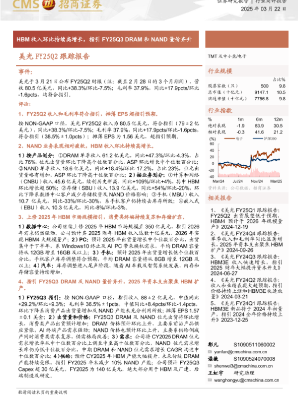 【海通证券】【20250322】美光FY25Q2跟踪报告:HBM收入环比持续高增长,指引FY25Q3 DRAM和NAND量价齐升-18页