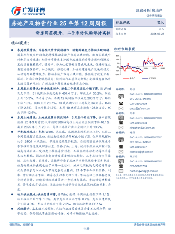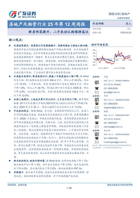 【广发证券】【20250323】房地产及物管行业25年第12周周报:新房网签提升,二手来访认购维持高位-25页