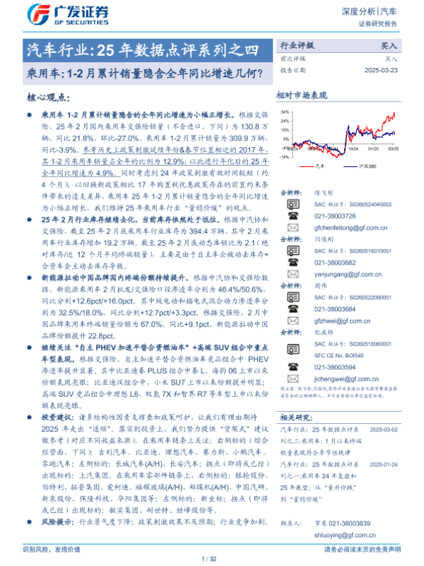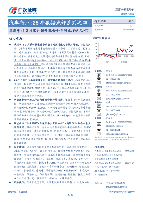 【广发证券】【20250323】25年数据点评系列之四-乘用车:1-2月累计销量隐含全年同比增速几何?-32页