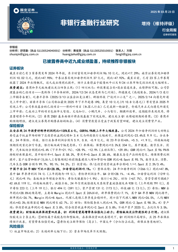 【国金证券】【20250323】非银行金融行业研究:已披露券商中近九成业绩盈喜,持续推荐非银板块-10页