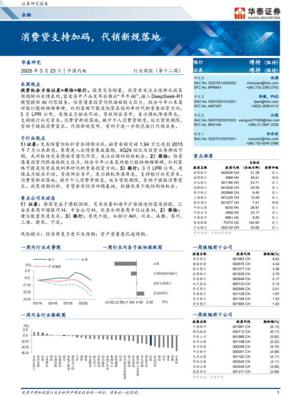 【华泰证券】【20250323】20250323-华泰证券-金融行业周报(第十二周):消费贷支持加码,代销新规落地-22页