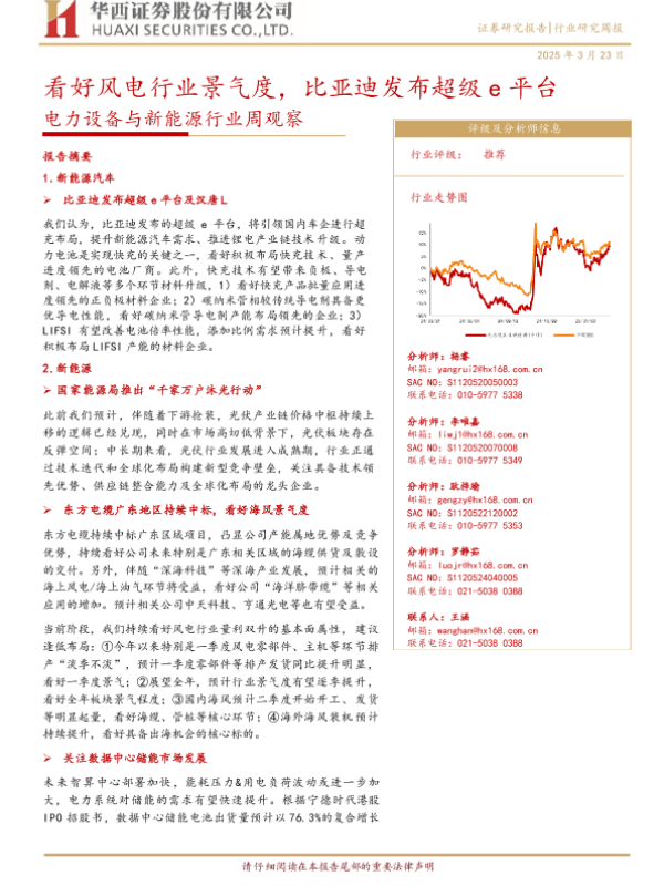 【华西证券】【20250323】20250323-华西证券-电力设备与新能源行业周观察:看好风电行业景气度,比亚迪发布超级e平台-29页