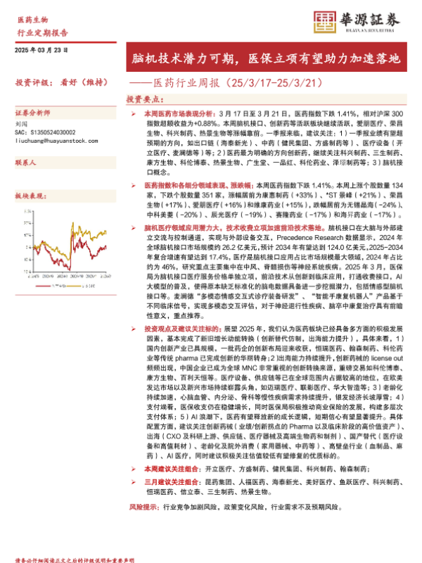 【华源证券】【20250323】医药行业周报:脑机技术潜力可期,医保立项有望助力加速落地-15页