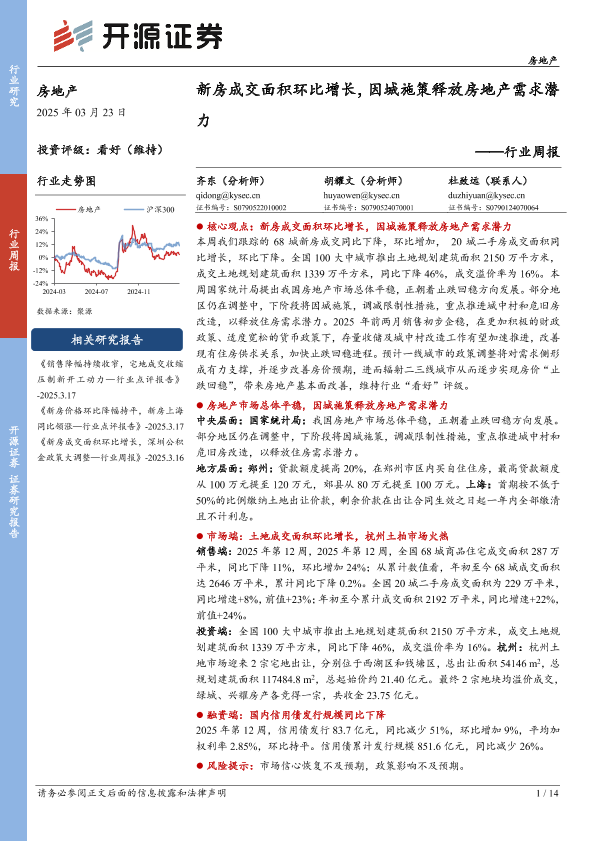 【开源证券】【20250323】新房成交面积环比增长,因城施策释放房地产需求潜力-14页