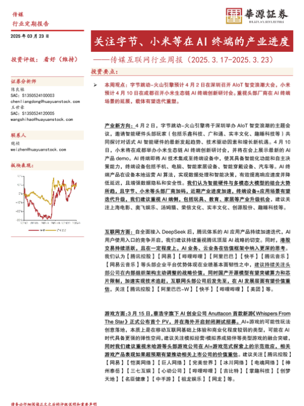 【华源证券】【20250323】20250323-华源证券-传媒互联网行业周报:关注字节、小米等在AI终端的产业进度-17页