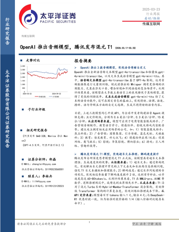 【太平洋证券】【20250323】传媒互联网行业周报:OpenAI推出音频模型,腾讯发布混元 T1-21页