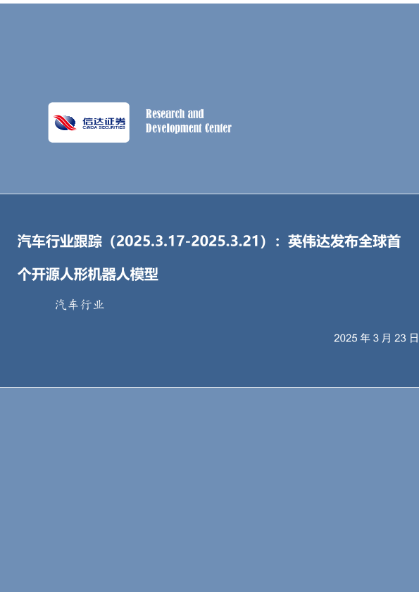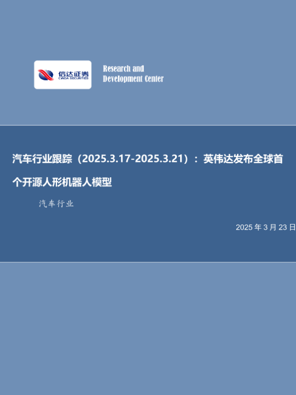 【信达证券】【20250323】汽车行业跟踪(2025.3.17-2025.3.21):英伟达发布全球首个开源人形机器人模型-14页