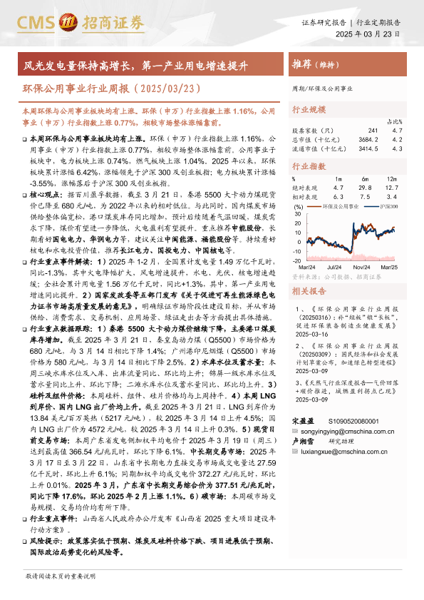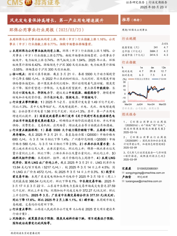 【海通证券】【20250323】20250323-招商证券-环保公用事业行业周报:风光发电量保持高增长,第一产业用电增速提升-21页