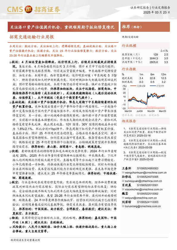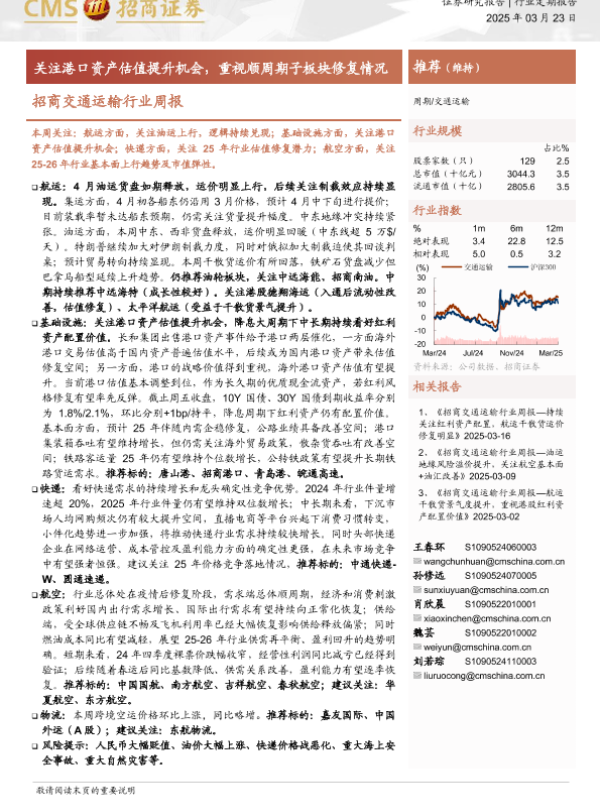 【海通证券】【20250323】20250323-招商证券-招商交通运输行业周报:关注港口资产估值提升机会,重视顺周期子板块修复情况-15页