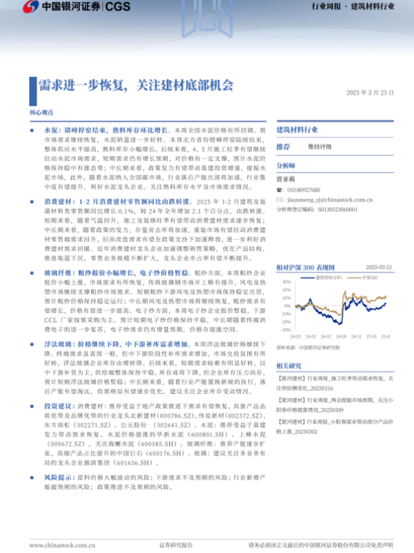 【银河证券】【20250323】20250323-中国银河-建筑材料行业行业周报:需求进一步恢复,关注建材底部机会-14页