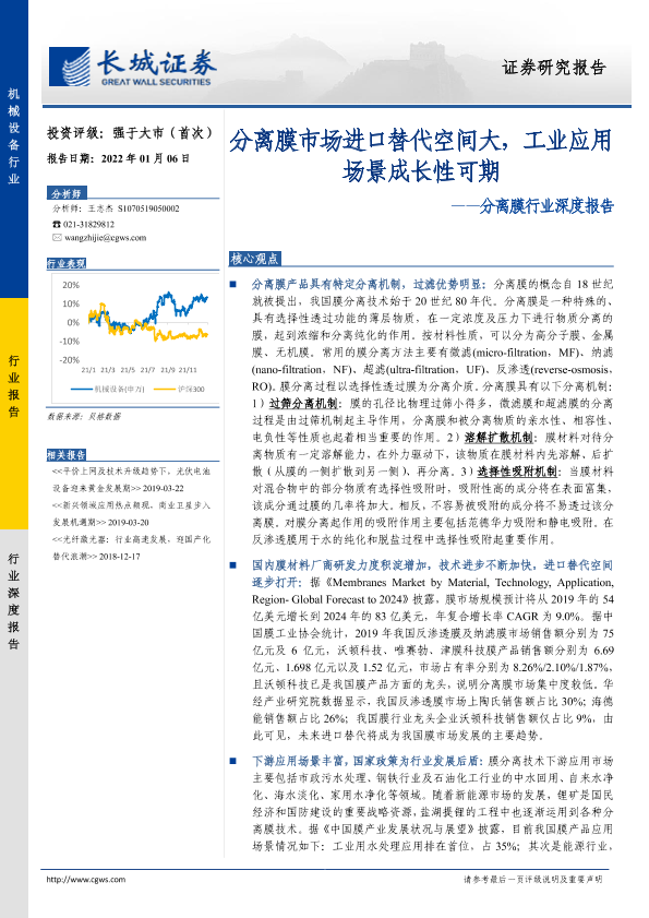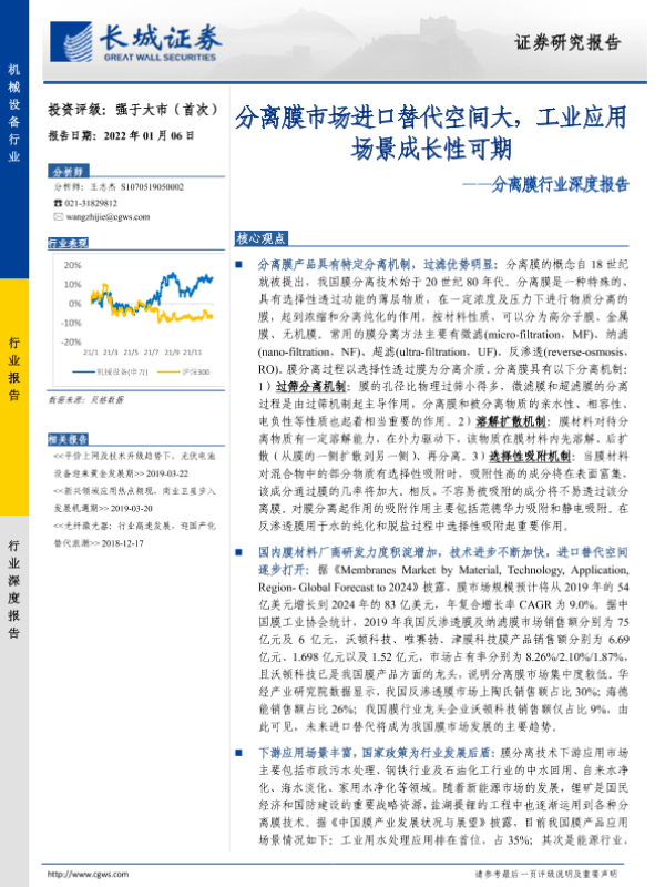 【长城证券】【20220106】分离膜行业深度报告:分离膜市场进口替代空间大,工业应用场景成长性可期-45页