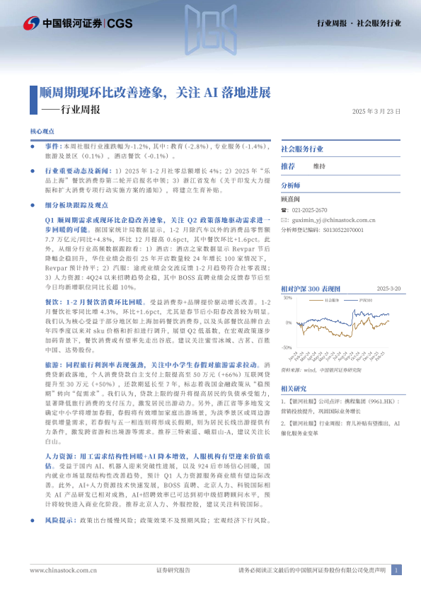 【银河证券】【20250323】社会服务行业行业周报:顺周期现环比改善迹象,关注AI落地进展-15页