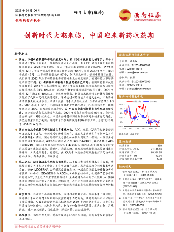 【西南证券】【20220104】创新药行业报告:创新时代大潮来临,中国迎来新药收获期-73页