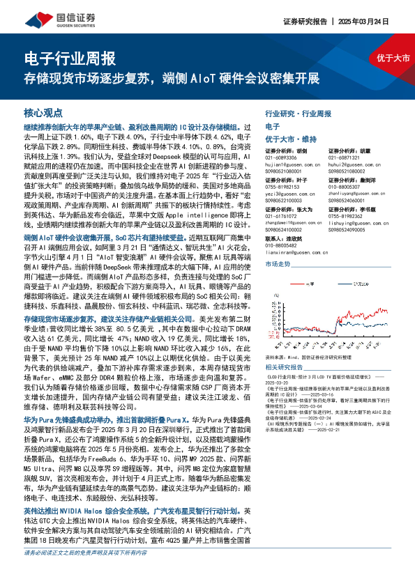 【国信证券】【20250324】20250324-国信证券-电子行业周报:存储现货市场逐步复苏,端侧AIoT硬件会议密集开展-10页