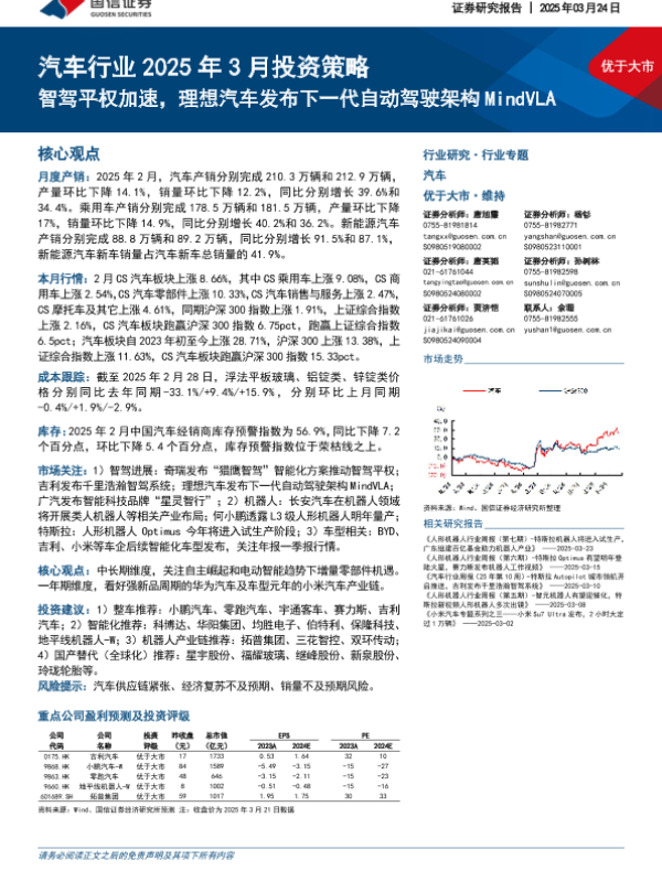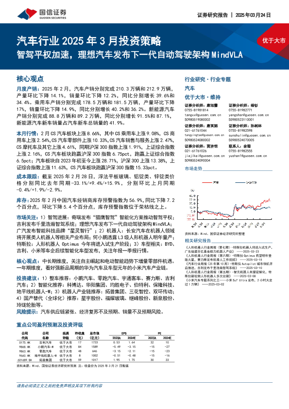 【国信证券】【20250324】汽车行业2025年3月投资策略:智驾平权加速,理想汽车发布下一代自动驾驶架构MindVLA-35页