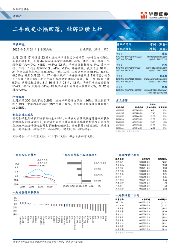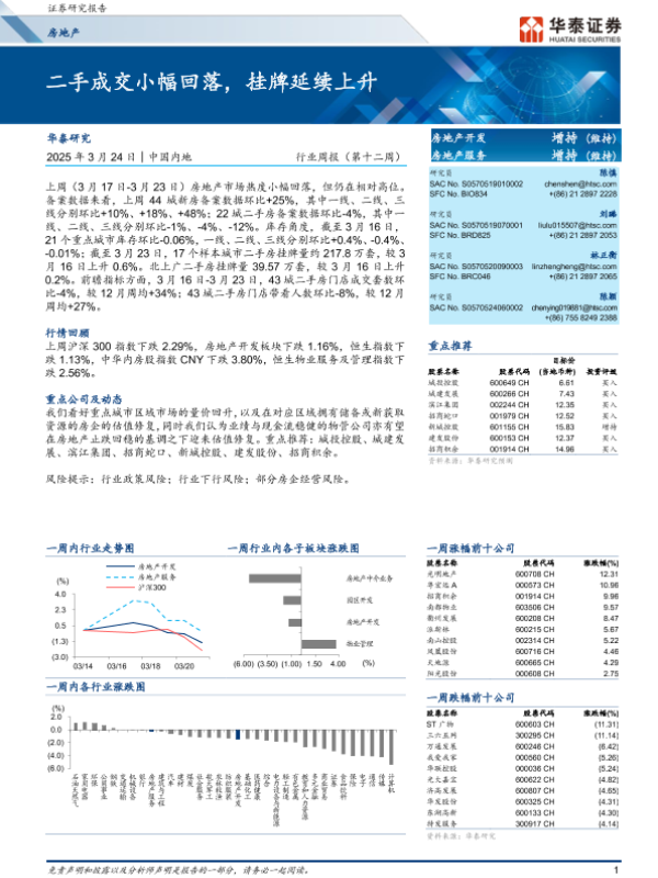 【华泰证券】【20250324】20250324-华泰证券-房地产行业周报(第十二周):二手成交小幅回落,挂牌延续上升-10页