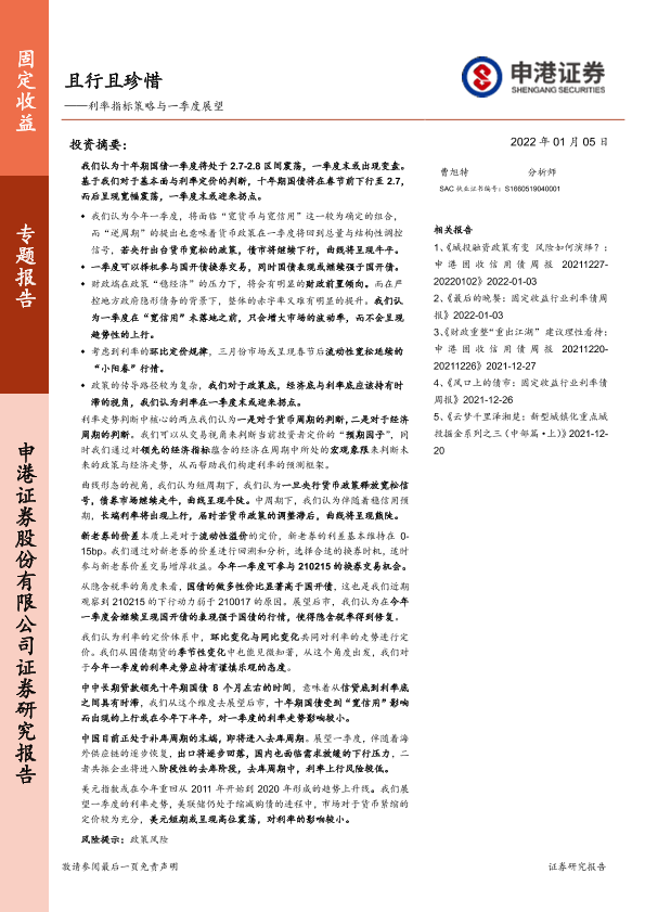 【申港证券】【20220105】利率指标策略与一季度展望:且行且珍惜-16页
