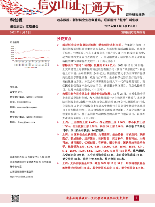 【山西证券】【20220102】动态跟踪2022年第1期(总151期):新材料企业密集登陆,联影医疗“报考”科创板-23页