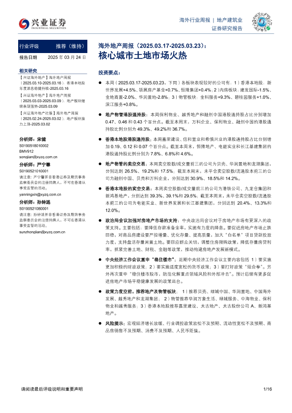 【兴业证券】【20250324】20250324-兴业证券-海外地产周报:核心城市土地市场火热-16页