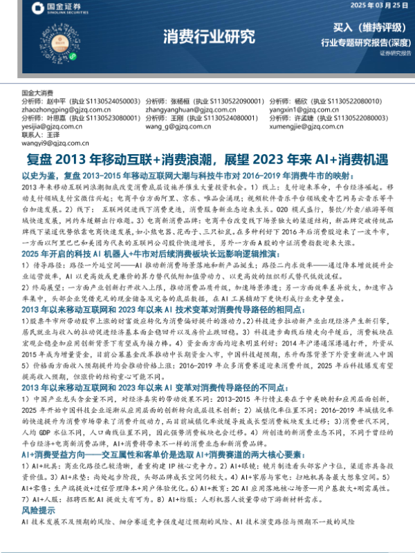【国金证券】【20250325】复盘2013年移动互联网+消费浪潮,展望2023年来的AI+消费机遇-59页