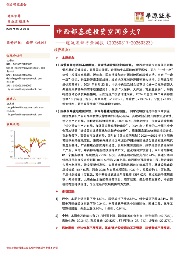 【华源证券】【20250325】建筑装饰行业周报:中西部基建投资空间多大?-11页