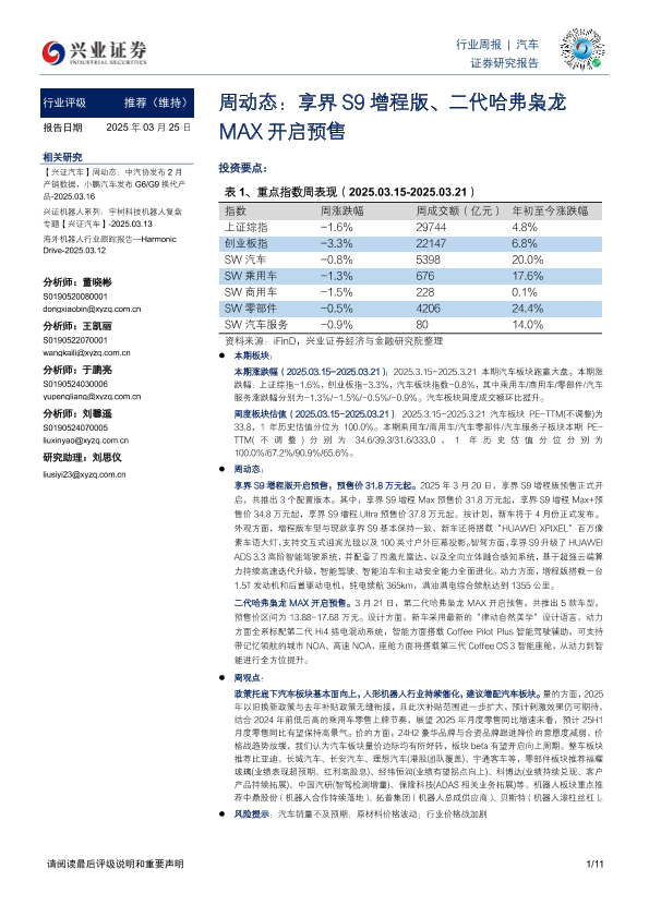 【兴业证券】【20250325】20250325-兴业证券-汽车周动态:享界S9增程版、二代哈弗枭龙MAX开启预售-11页
