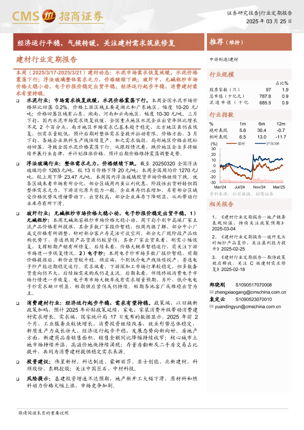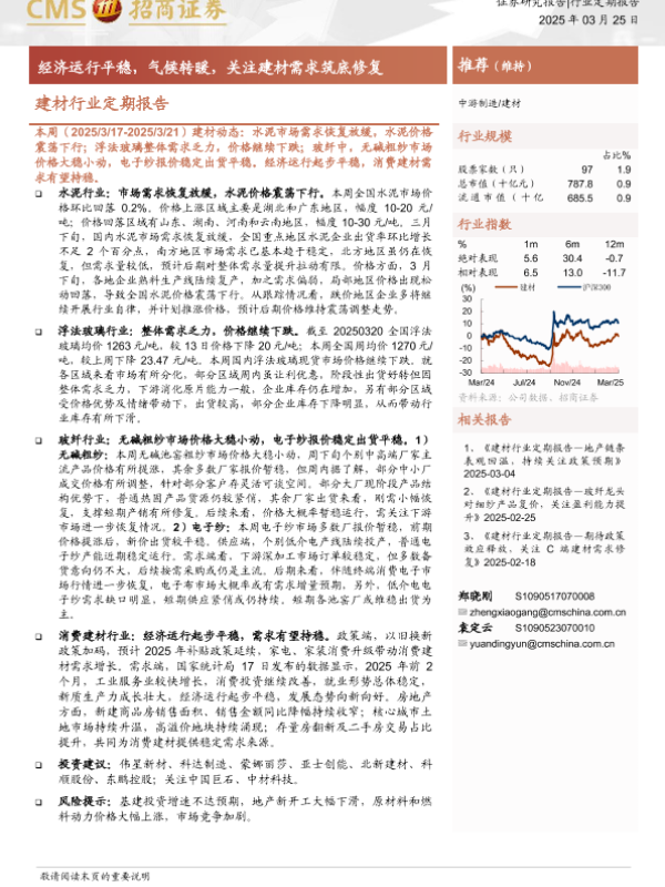 【海通证券】【20250325】20250325-招商证券-建材行业定期报告:经济运行平稳,气候转暖,关注建材需求筑底修复-25页