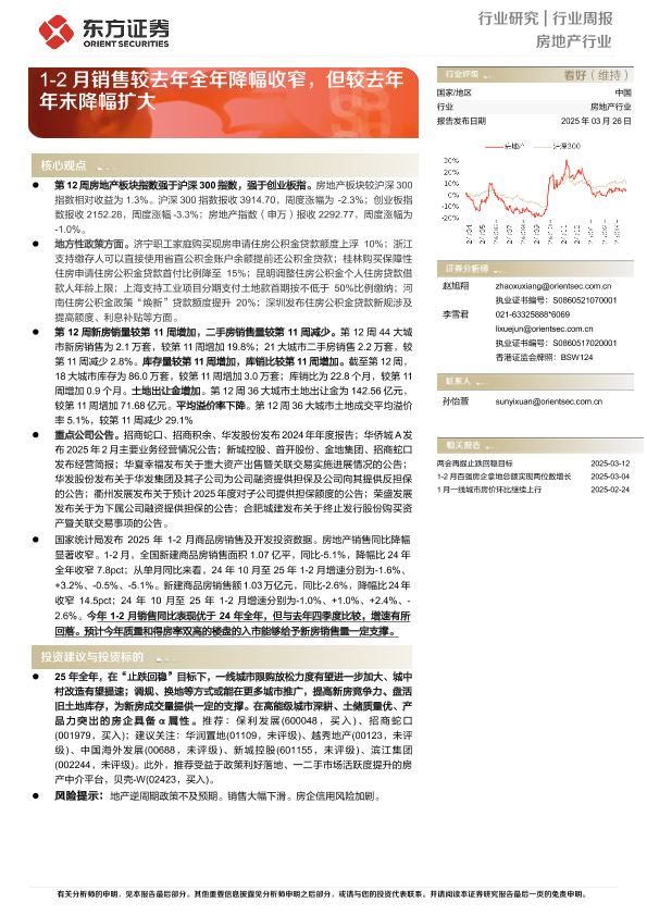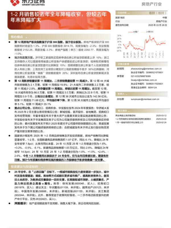 【东方证券】【20250326】20250326-东方证券-房地产行业行业周报:1-2月销售较去年全年降幅收窄,但较去年年末降幅扩大-13页