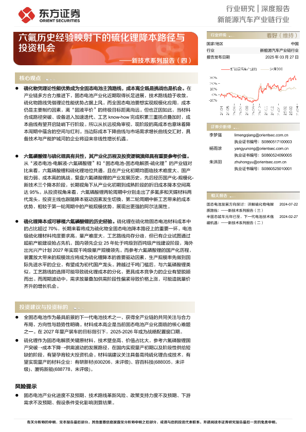 【东方证券】【20250327】20250327-东方证券-新能源汽车产业链行业:新技术系列报告(四)-六氟历史经验映射下的硫化锂降本路径与投资机会-21页